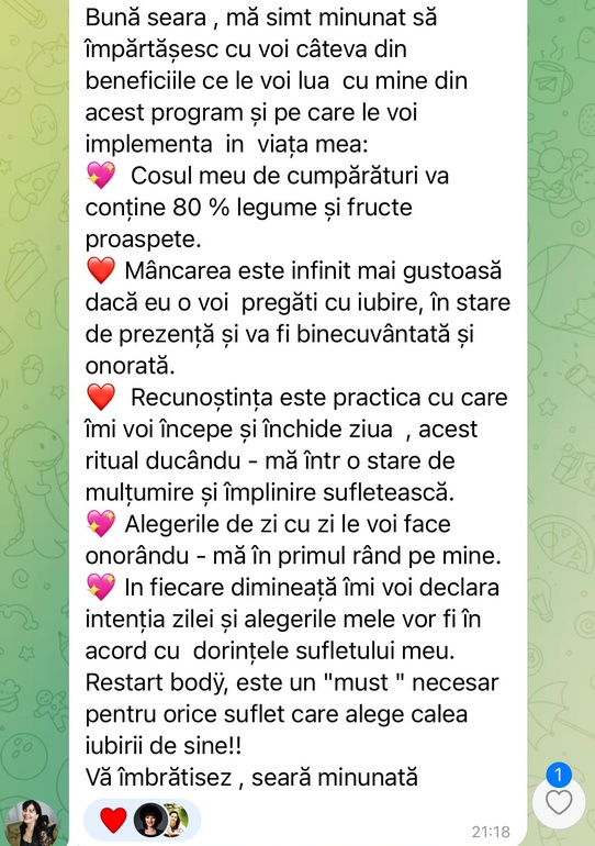 Ești pregătită să îți transformi viața și să îți "hrănești" bucuria și plăcerea de a trăi, mereu în ACUM?