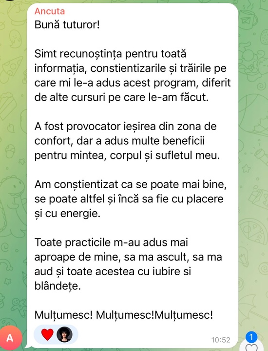 Ce poate interveni între tine și participarea în program este exact ce e de transformat: amânarea, scuzele, neprezența, presiunea timpului, lipsa de angajament, claritate, responsabilitate și integritate față de tine și viața ta.